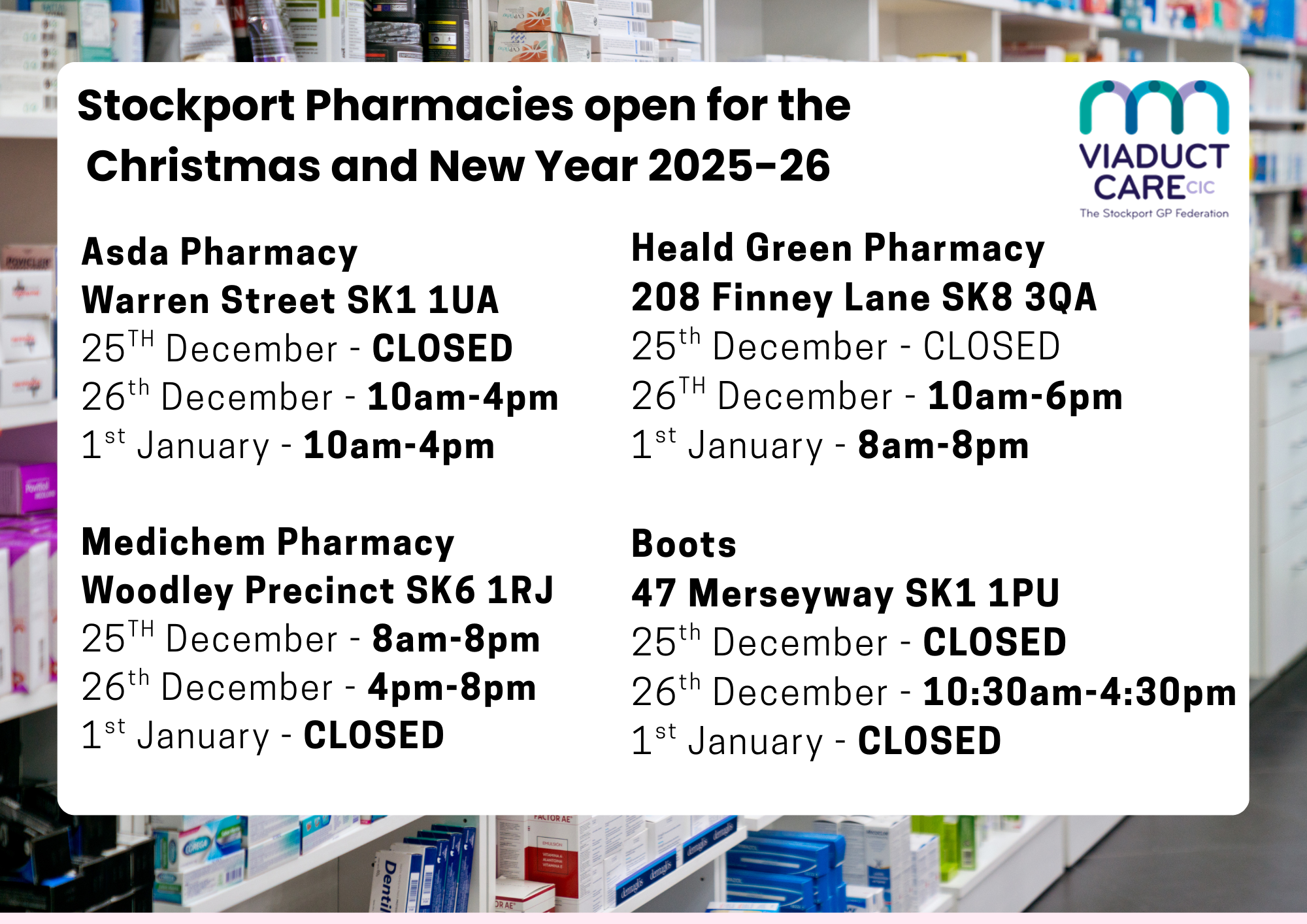 Pharmacies open across Stockport for the festive season! Posted by: sasha - Posted on: 4th December 20254th December 2025